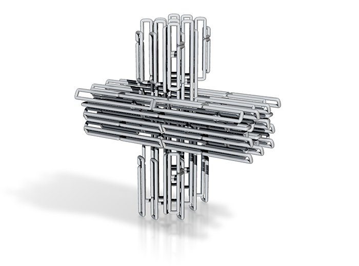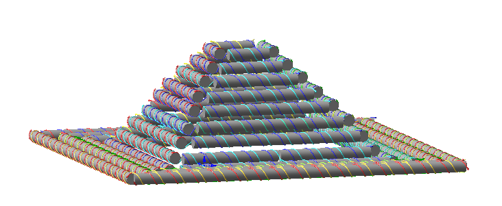 After this, a continuous route through all the 108 strands was chosen. This was done by installing scaffold crossovers. The task was not trivial and multiple iterations had to be made to finally join the entire structure together. The shape was compromised a bit during this process, and a few strands had to be left out, leaving 104 strands in the structure finally (Fig.5).
