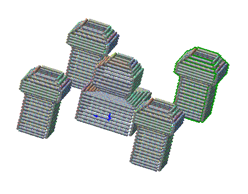 We also attempted to create the Taj Mahal using different Multilayer DNA origami space-filled structures, and looked into available techniques to join these structures together. First of all, we created all the individual structures needed for the Taj Mahal (four pillars and central dome), and after this a master plan of the structure was created for future reference, as depicted in the figure 16. Firstly we discussed over how the base could be created. The base could be either a single structure or it can be multiple structures holding the 3D pieces and combining the bases using 3D tile staplers. The following images (See Figures 16 and 17) illustrate both these concepts.