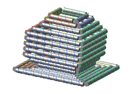 Next, some basic designs were created using Nano Engineers, which used the principles that we would use later on in designing the Taj Mahal. These are Decagonal Dome (29nm radius, 10 crossovers, 8 rings), Cylindrical Tubes (10nm radius tubular), Pyramidal Tops (13nm radius, 5 crossovers, 5 rings), Cubical Body (85nm width) and a square base.