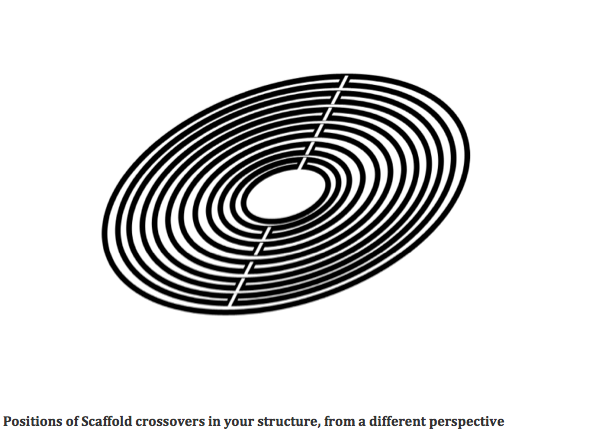 While designing the 3D structures, we decided to follow the tried and tested principles for determining the positions of the scaffold and the stapler crossovers in the structure.
