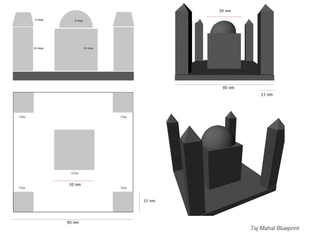Taj Mahal, DNA origami, 3D, 2D, KonCAD, M13 virus, caDNAno