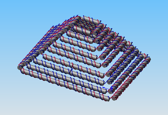After a continuous route was established, staples were installed in the structure, mostly using Auto-Staple feature provided in caDNAno, and some manually. Moreover, auto-staple feature does not generate perfect staples. The staplers had to be modified at lot of places to meet the length constraints. This was all done manually.