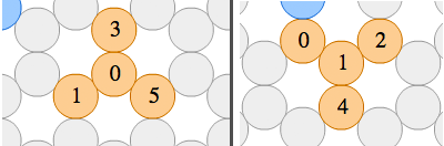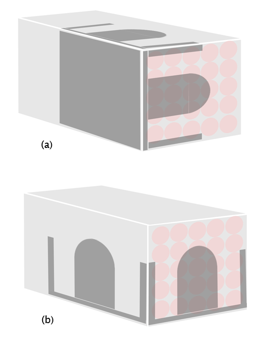 However, since we calculated that we would not be able to use the entire space of caDNAno due to limitation on the size of the scaffold we could use, we decided to go with configuration in Fig. 4(b) for the sake of simplicity.