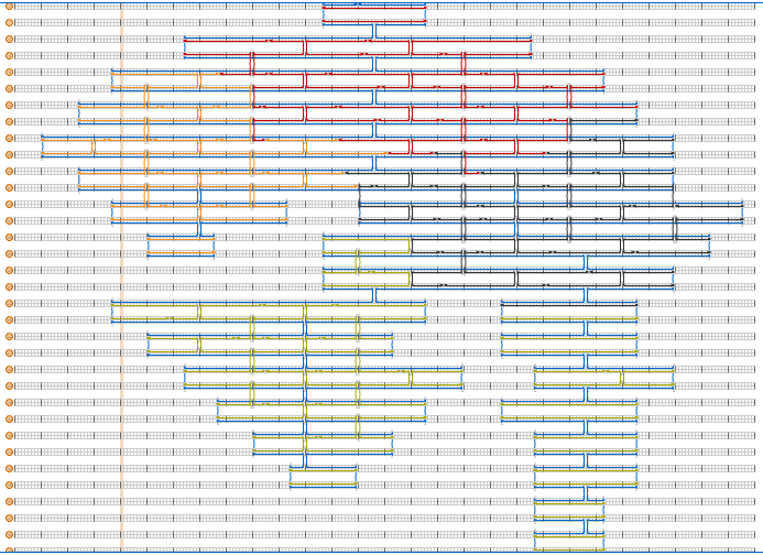 DNA origami is made from long strands of viral DNA. To fold it up, small pieces of 'helper' DNA are used - which are pre-coded to interact, (via Watson-Crick base pairing), at specific points on the strand. These can be configured to weave the DNA strand back and forth, generating a pattern.